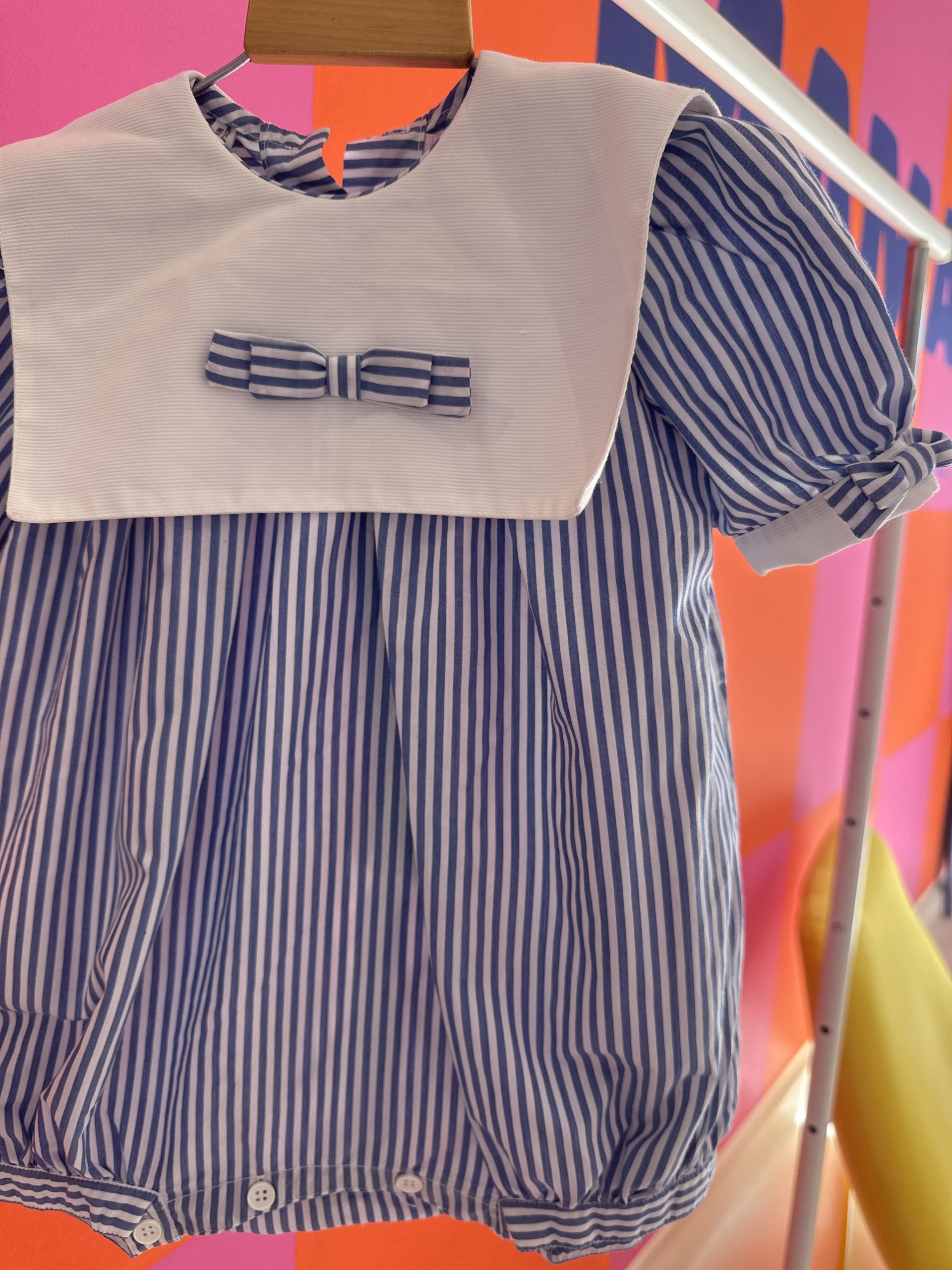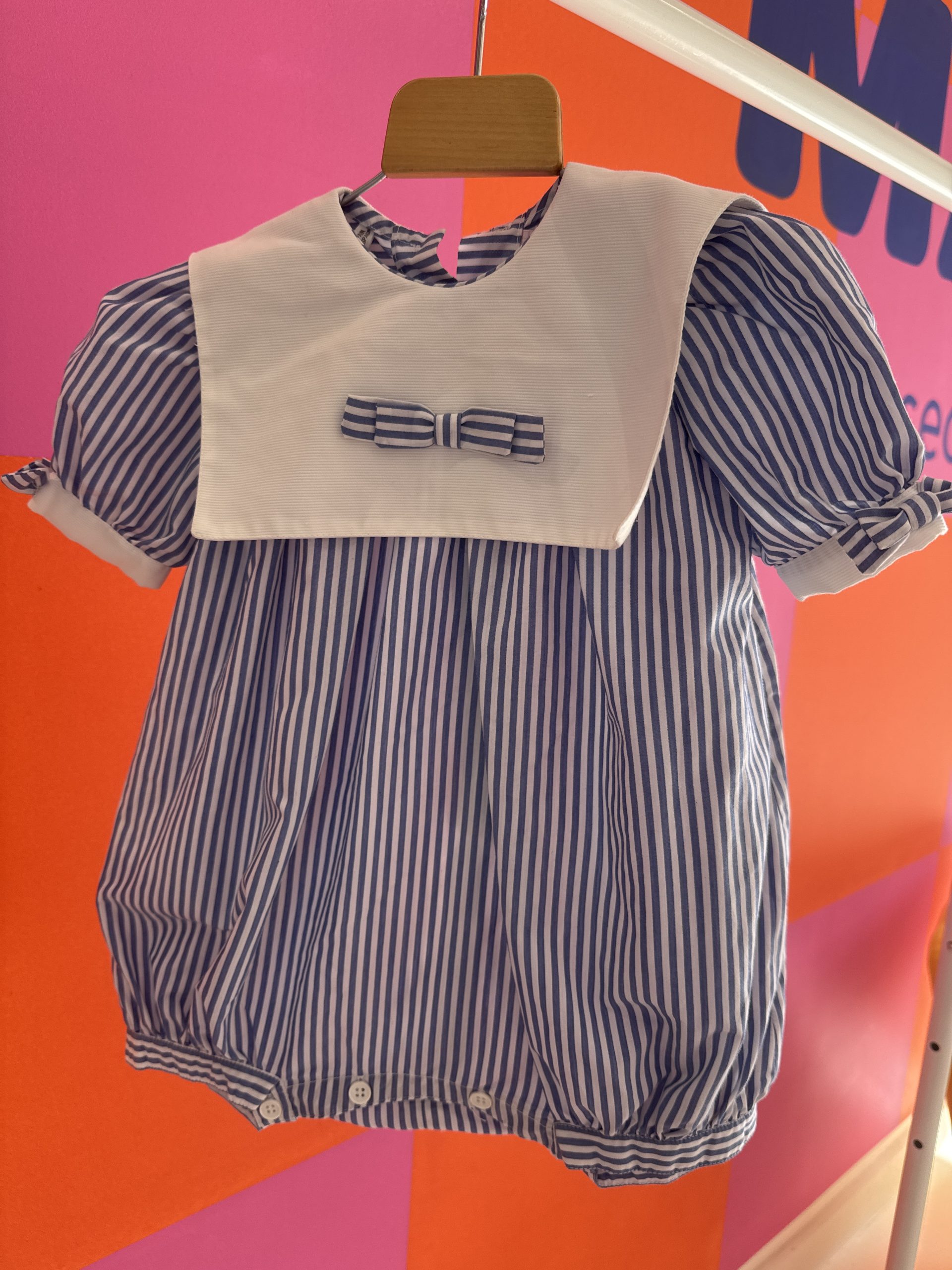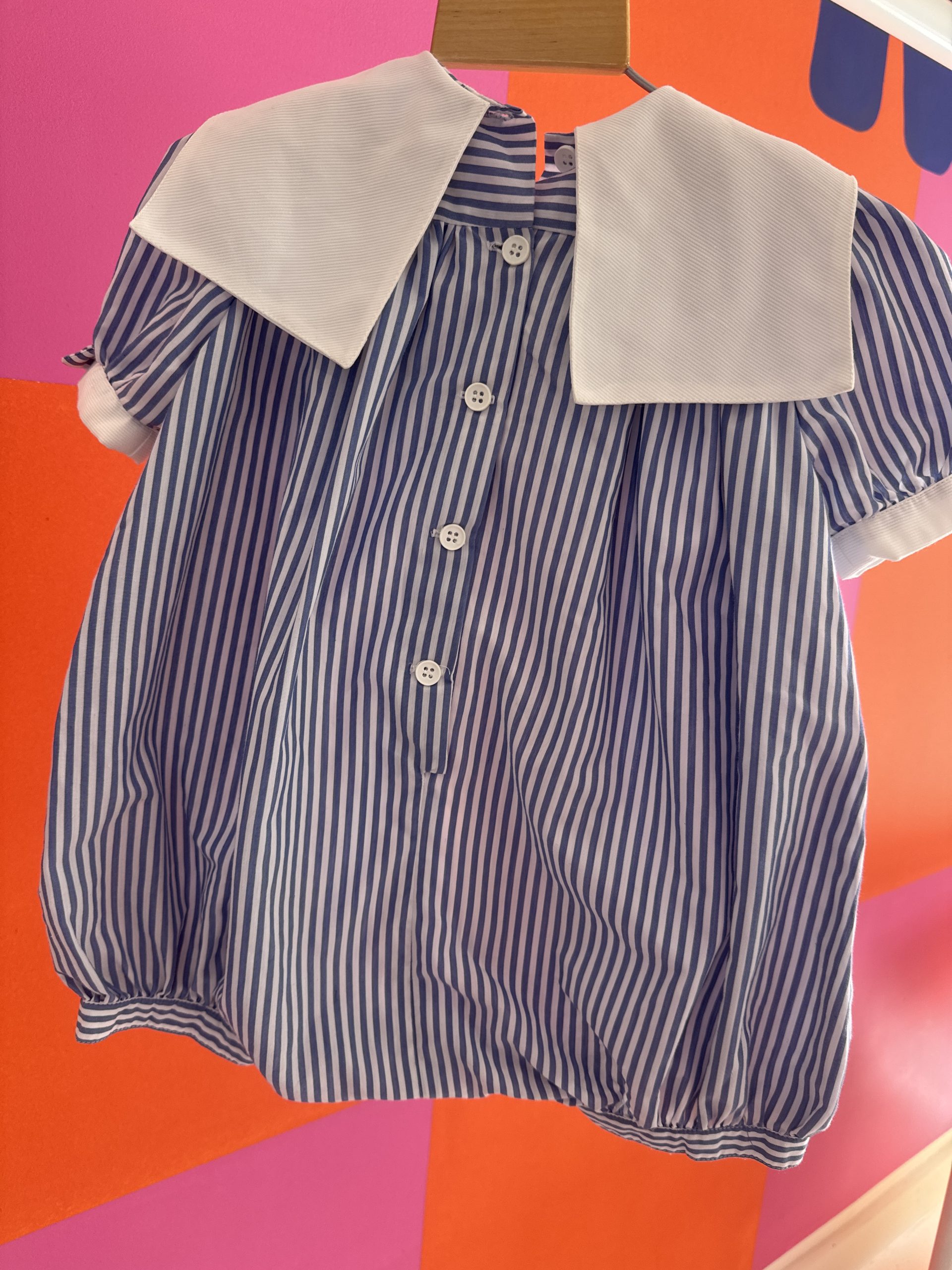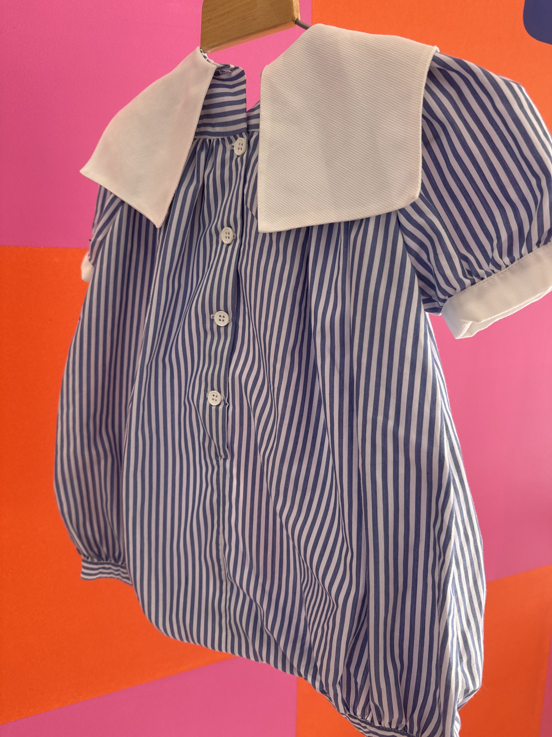 Soyez le premier à laisser votre avis sur “Barboteuse vintage rayée bleu et blanc Jacadi 6 mois”